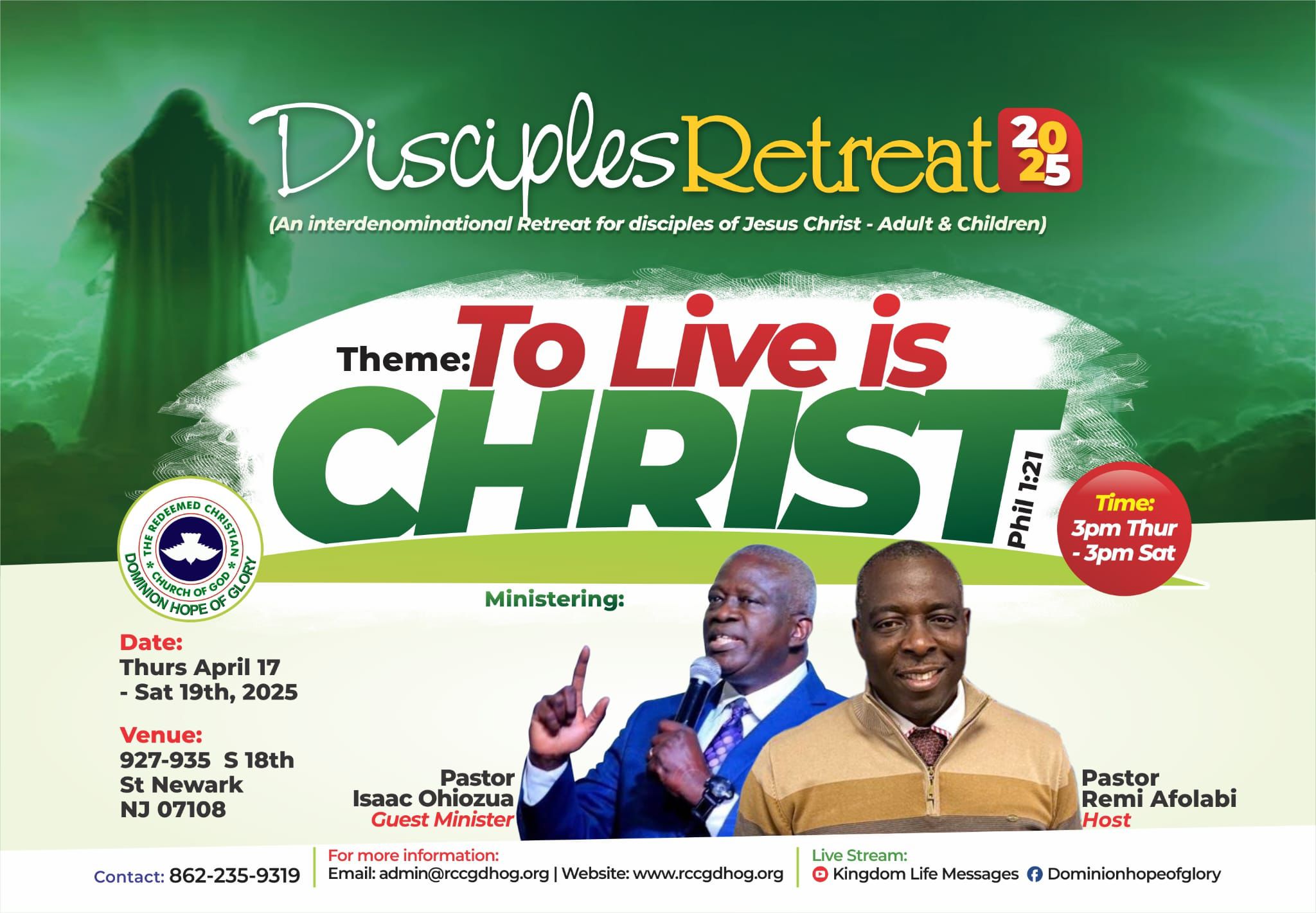 DISCIPLES RETREAT DISCIPLES RETREAT + Add to Google Calendar + iCal / Outlook export Date Apr 17 - 19 2025 Expired! Time All Day Local Time Timezone: America/New_York Date: Apr 17 - 19 2025 Time: All Day Category Church Program Share this event